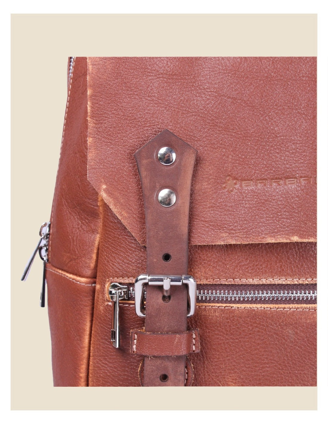Chiusura sicura: patta con fibbie in cuoio che conferisce uno stile distintivo