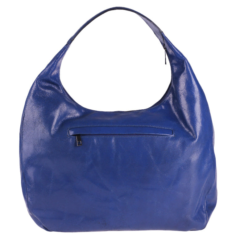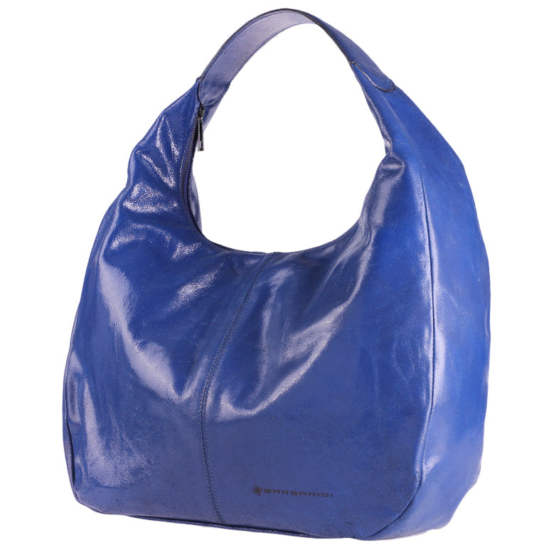 La borsa Frida in pelle blu lucida (39x44x14 cm) unisce capienza e stile per la donna moderna. Dotata di un manico in pelle e di uno scomparto centrale con zip, dispone di fodera interna, tasca centrale con zip, una tasca laterale e un vano per cellulare. Realizzata in pelle morbida blu effetto asportato, offre una superficie luminosa e riflettente, arricchita da dettagli in metallo canna di fucile, per un design raffinato e contemporaneo ideale per l’uso quotidiano.