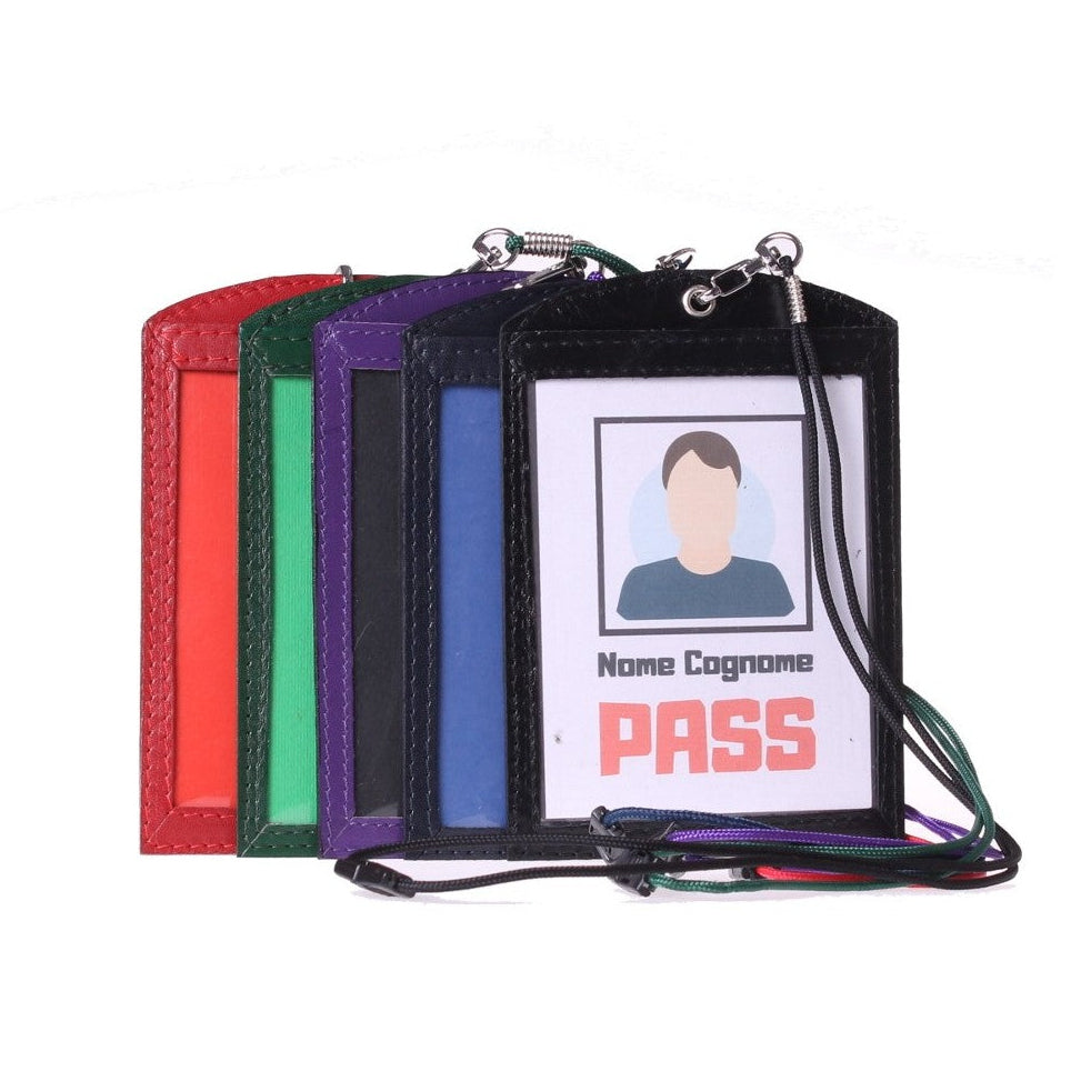 Portatesserino, Portapass, Portabadge unisex in vera pelle, completamente lavorato a mano nei nostri laboratori. La soluzione versatile con doppia tasca per badge di diverse dimensioni.
